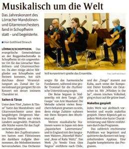 Lörrach. Zufrieden und mit ein wenig Stolz auf das Geleistete blickten die Mitglieder des Mandolinen- und Gitarrenorchesters Lörrach (MGO) bei ihrer Generalversammlung im Naturfreundehaus auf das vergangene Jahr. Dieses stand ganz im Zeichen ihrer neuen Musik-CD.